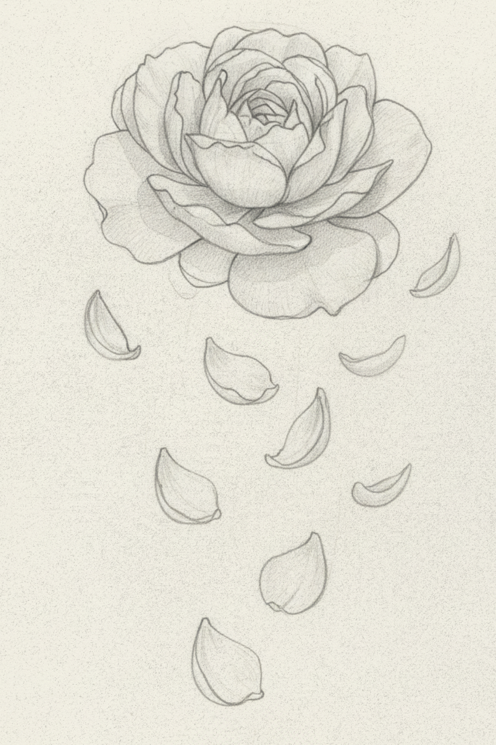 Just as buds open in their own time, patience reminds us that everything unfolds when ready. Try sketching a rosebud—tight, gentle lines representing potential energy.